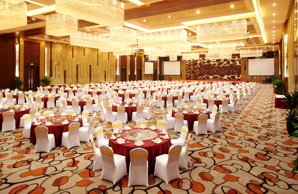 1570平方米的昆泰大宴会厅,内饰设计突现中式建筑的尊贵与雍容,炫目的巨型吊顶水晶灯散发金色的光芒,使整个大厅更显得富丽堂皇。 8米挑高空间以及无柱式的设计,方便将您的各种宴会设想变为现实。
